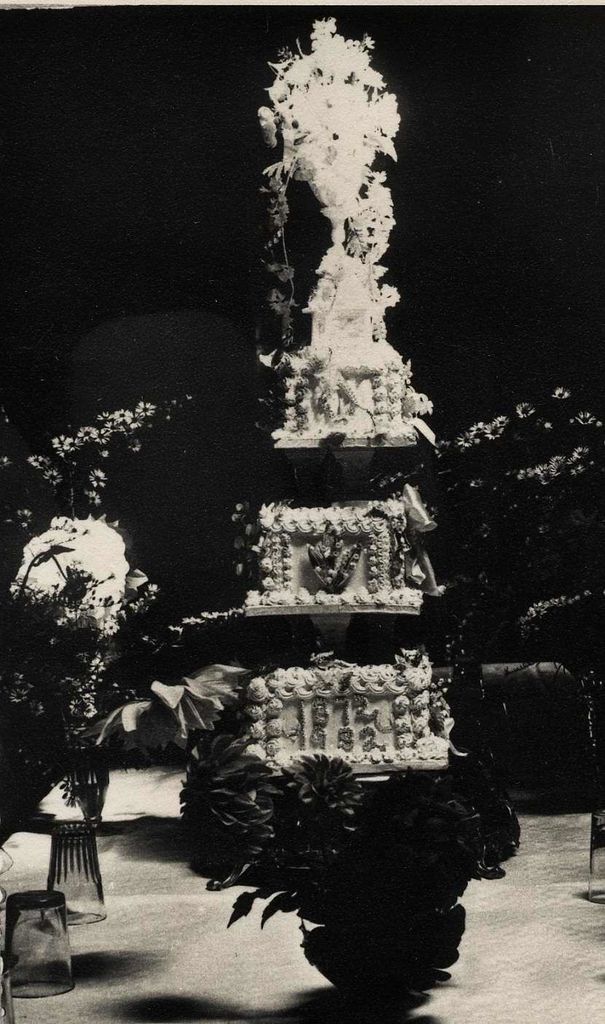 Iced cake at the diamond wedding celebrations of Mr and Mrs J F de Ridder
