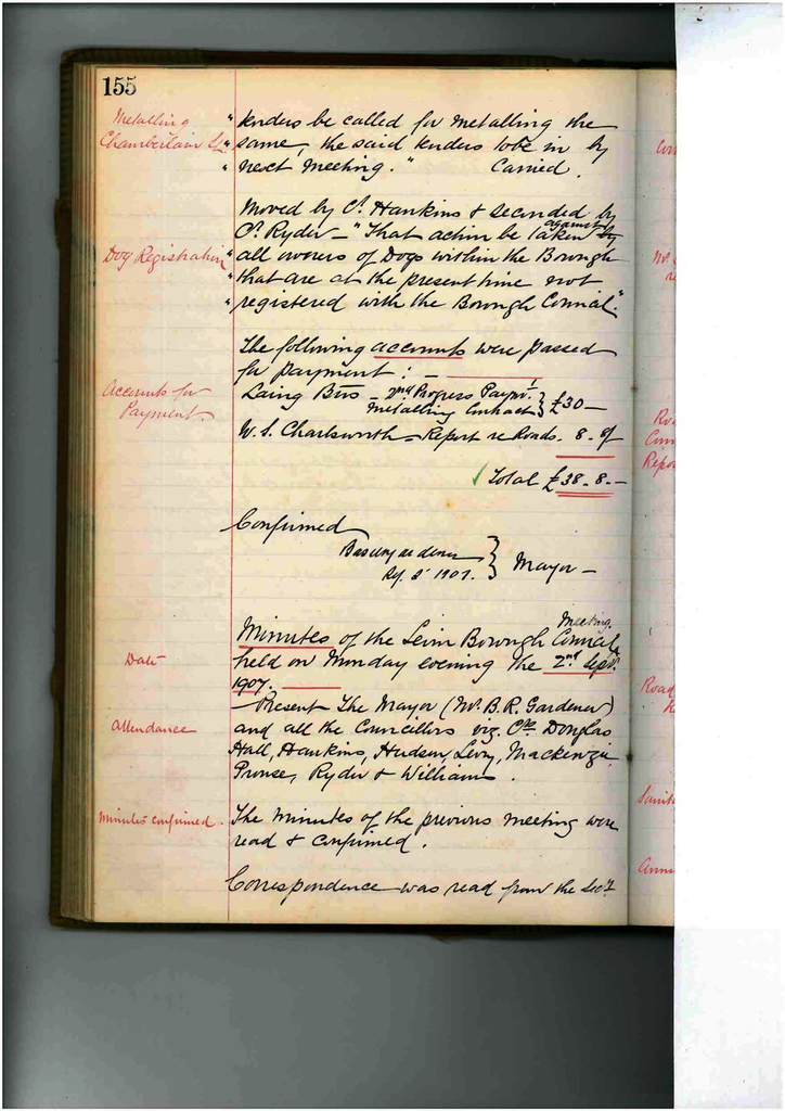The Town Clerk’s report for the year ending 31 March 1907 was read and considered in committee. The Report as amended was adopted by the Council.