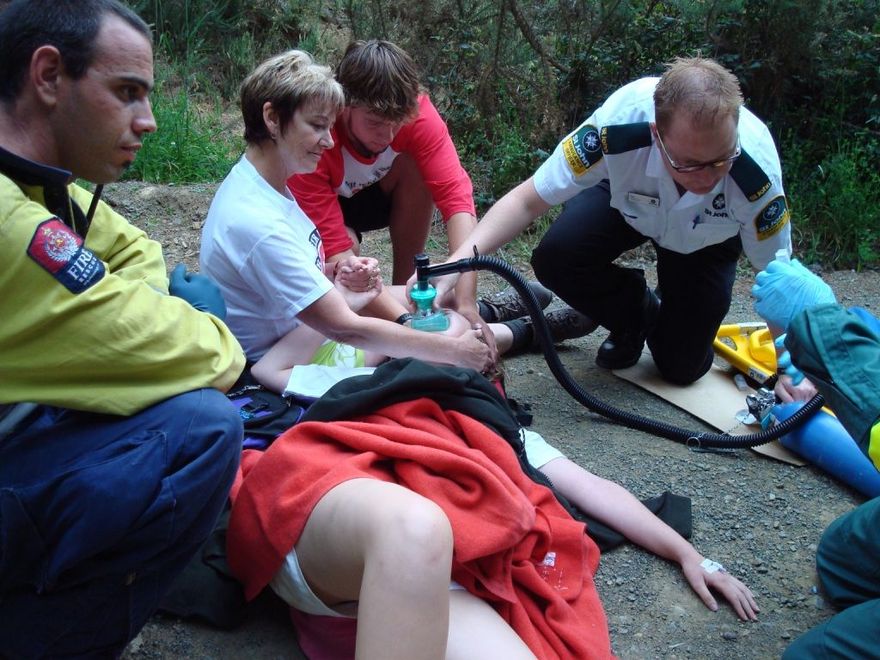 Meg was holding onto Deb for an hour and half; here she is giving Deb the old vulcan death grip of pain. Eventually the rescue helicopter arrived with some serious drugs.