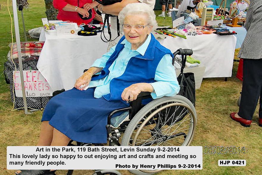 HJP 0421 Art in the Park, 119 Bath Street, Levin Sunday 9-2-2014 This lovely lady so happy to out enjoying art and crafts and meeting so many friendly people.