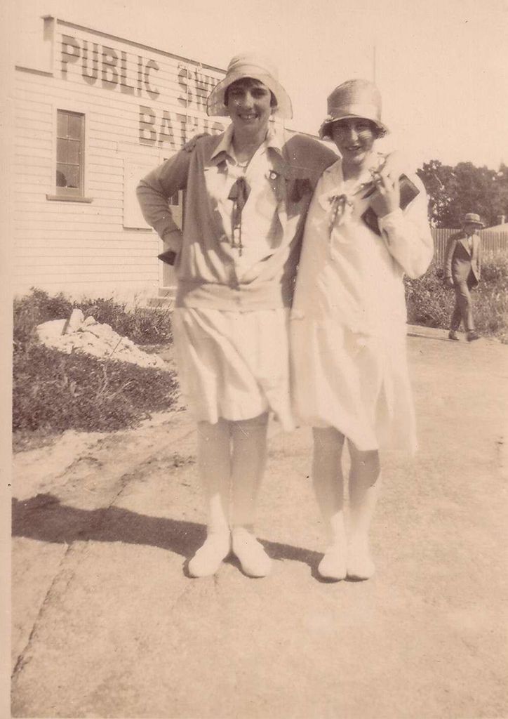 Lucy Thompson and Avis Haydock outside the Foxton Public swimming baths