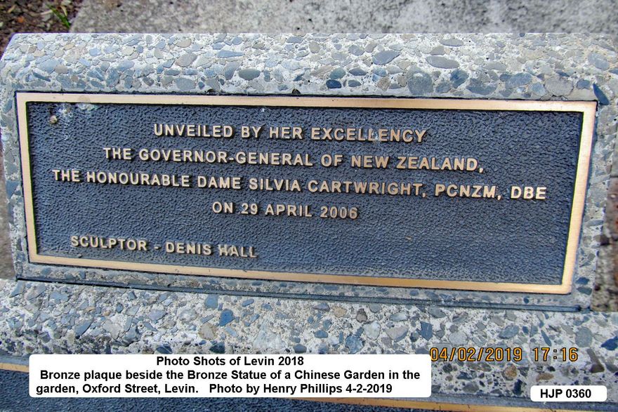 HJP 0360 Bronze plaque beside the Bronze Statue of a Chinese Garden in the garden at Oxford Street, Levin 4-2-2019