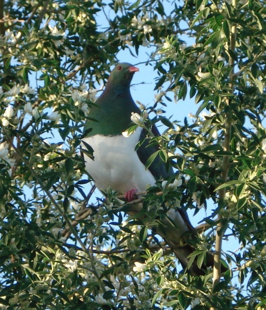 On 1 September 2007 this wood pigeon (kereru) was having breakfast in my garden, Muhunoa East Road.