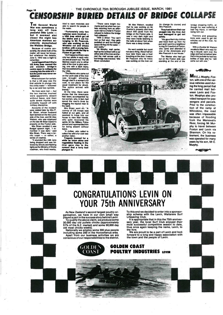 The Second World War was sometimes a long way off from peacefull little Levin- but it seemed alot closer the night two American marines accidently demolished the Wiokino Bridge.