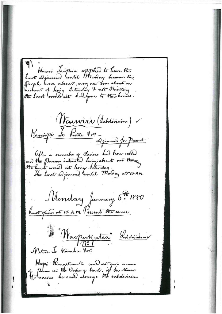 Otaki Maori Land Court Minutebook - 5 January 1880.