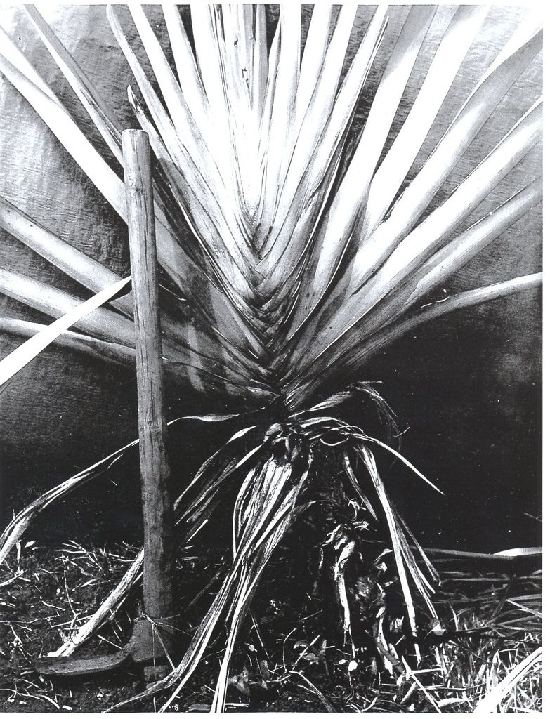 One of 9 photographs of flax (phormium tenax) and other plants taken by Uncle of Mrs M Illes. Flax plant fan with a grubber