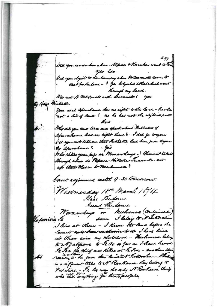 Tamehana Te Rauparaha said – I have a claim to this land – all over it. I want to prove the ---- of Rauparaha over this land until the present time. I call Matene, Rakapa, Ururoa, Poria, Cootes ½