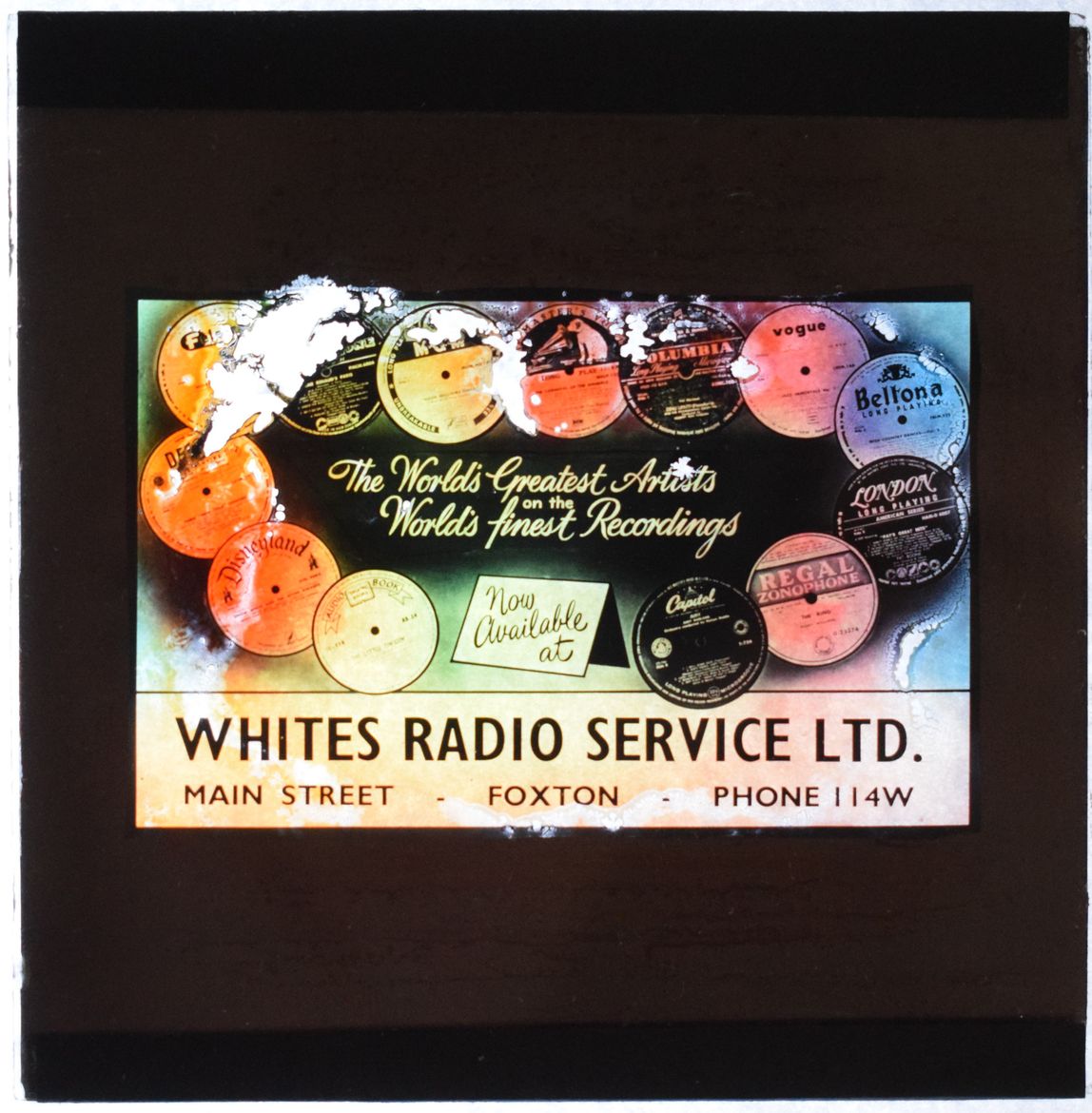 Whites Radio Service was trading on Foxton's Main Street in 1960 and stayed in it's site as late as 1987 (and possibly later) according to Kete Horowhenua's Foxton Historical Society posts.