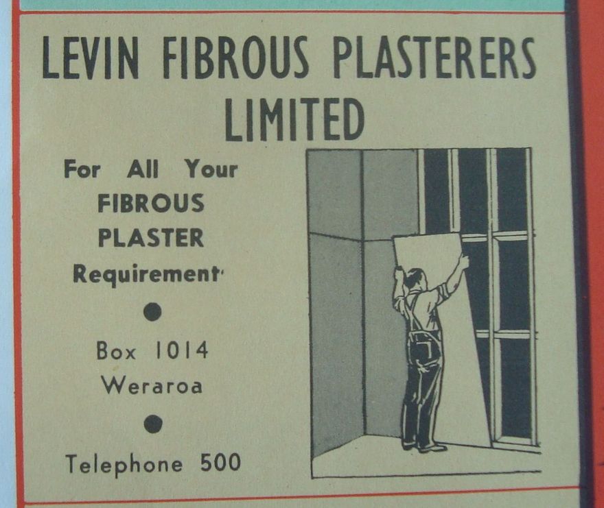 Advert for Levin Fibrous Plasterers Limited - from Wises Levin Map 1950s