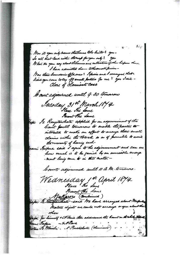 Otaki Maori Land Court Minutebook - 31 March 1874,