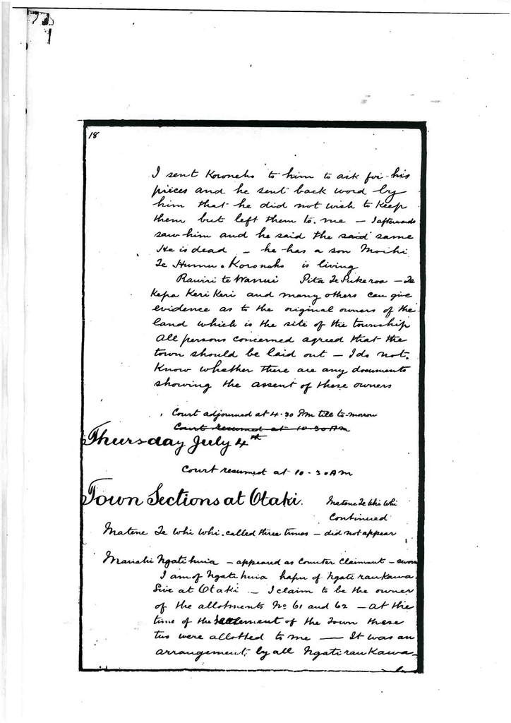 Manahi appeared and stated that he had made an arrangement with Matene by which Matene waived his claim to Lot 61 and to part of 62 – Enoka’s.