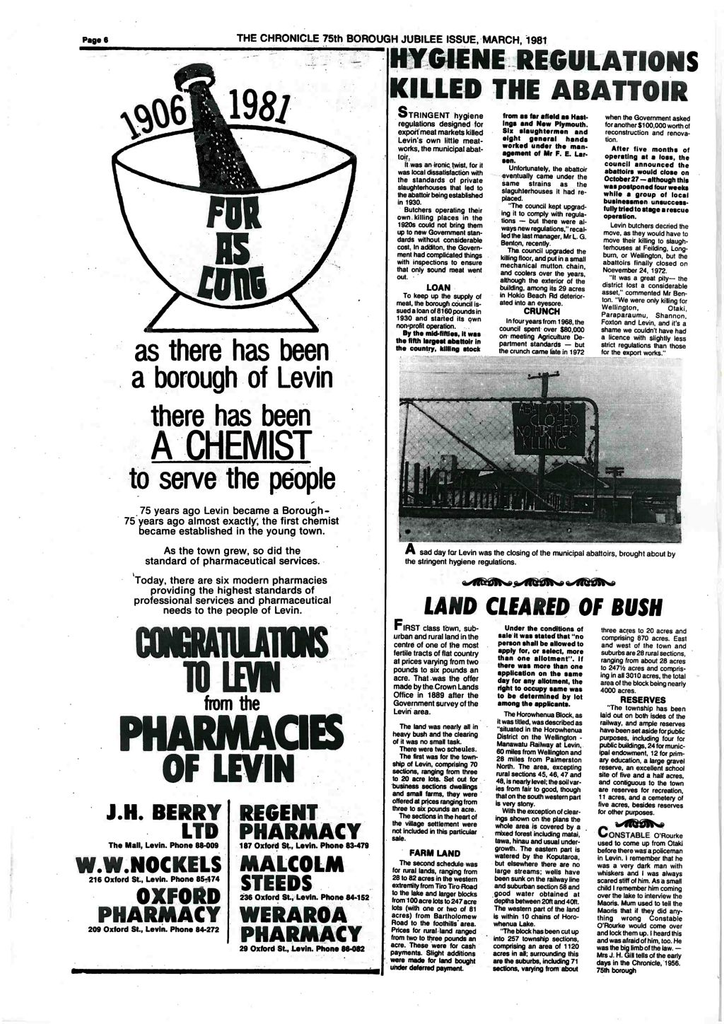 Stringent hygiene regulations designed for export meat markets killed Levin's own little meatworks, the municipal abattoir.