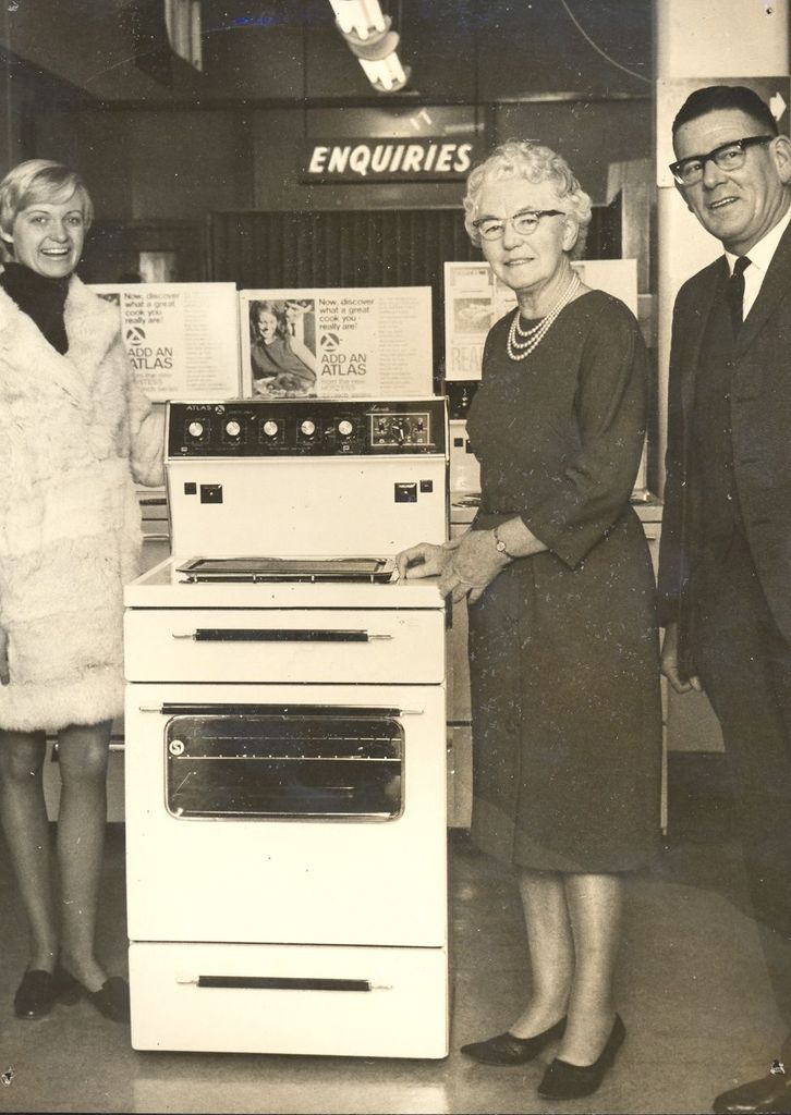 Miss N. Murdoch (left), winner of an Atlas Range, donated by H.E.P.B. and Scott Brothers. 1 B&W photo print