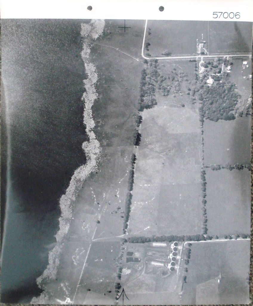 Farmland. Lake Horowhenua (left), & Queen Street West (top right), with sewerage treatment ? tanks & ponds (bottom).