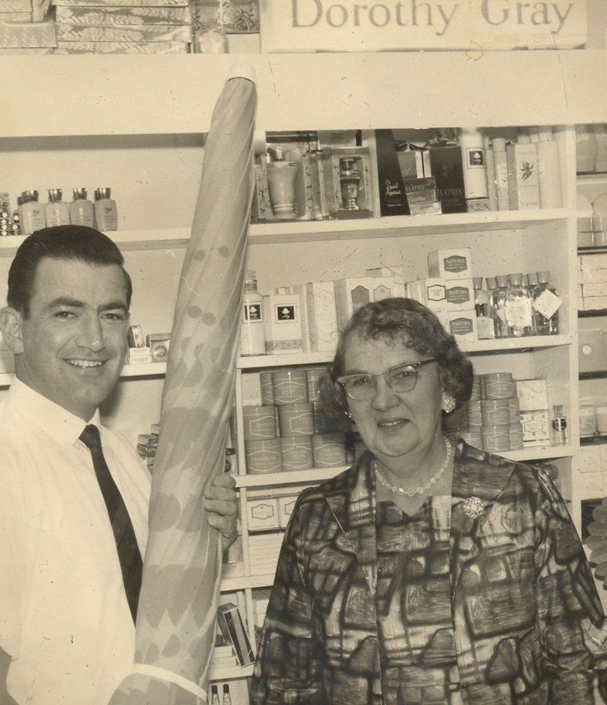 Penciled on back - Mrs E.G. Timu, Essex St, Levin was the other local winner in the “Go Dotty” competition, to find names for 3 different Dorothy Gray lipsticks. She was presented this morning with her prize by Mr J.H. Wyllie, Chemist. Tues. Mar. 12, 1968.
