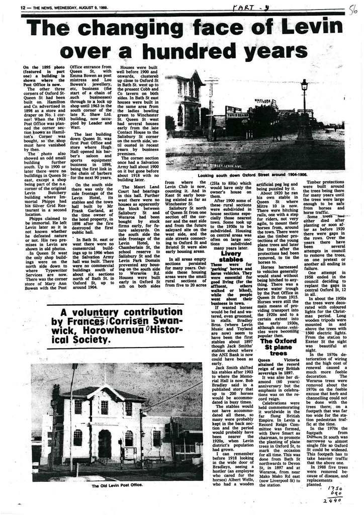 If wanted, horses would be fed and watered, even groomed, in stalls. Bradley Bros. (where Levin Music and Toyland are now) seem to have been the first stables about 1897 though Jack Smiths’ stables about where the ANZ Bank is now could have been as early.