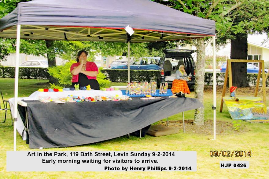 HJP 0426 Art in the Park, 119 Bath Street, Levin Sunday 9-2-2014 Early morning waiting for visitors to arrive.