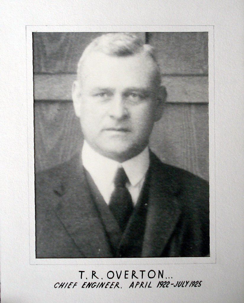 Printed with black ink on mounting board below photo - T.R. Overton… Chief Engineer. April 1922 – July 1925