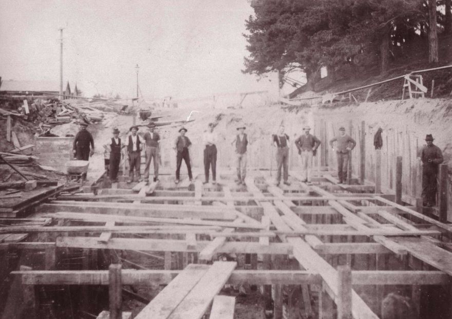 dis 7.00/Workmen posing on what could be septic tank construction/