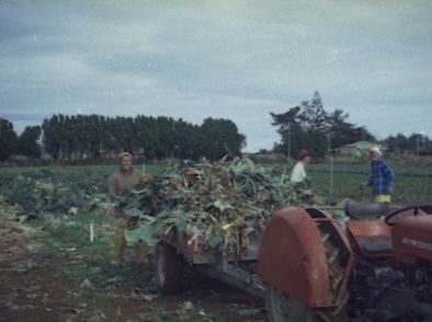 Harvesting vegetables, probably at Horticultural research Station.