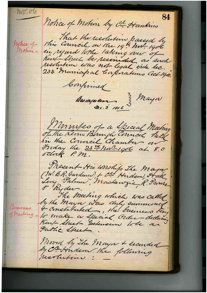 Minutes of Special Council Meeting 23 November 1906
