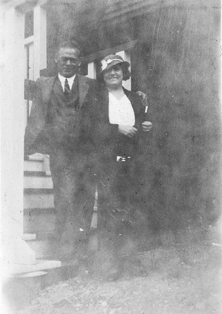 A Sutton couple standing outside a house. This photo is a bit blurred on the right hand side.