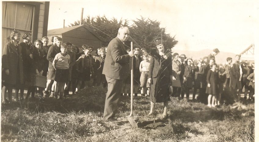 Tree planting possibly at Shannon School by Alf Hyde and Elenor Hyde.