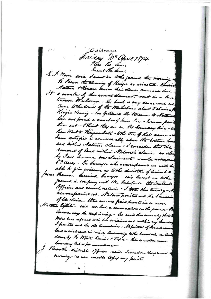 These are the boundaries of the old people I have carried them on to the Queens boundary. I don’t admit all Ngati Maiotaki on this land. Kingi, Hira, Mohi, Tamati, Maika