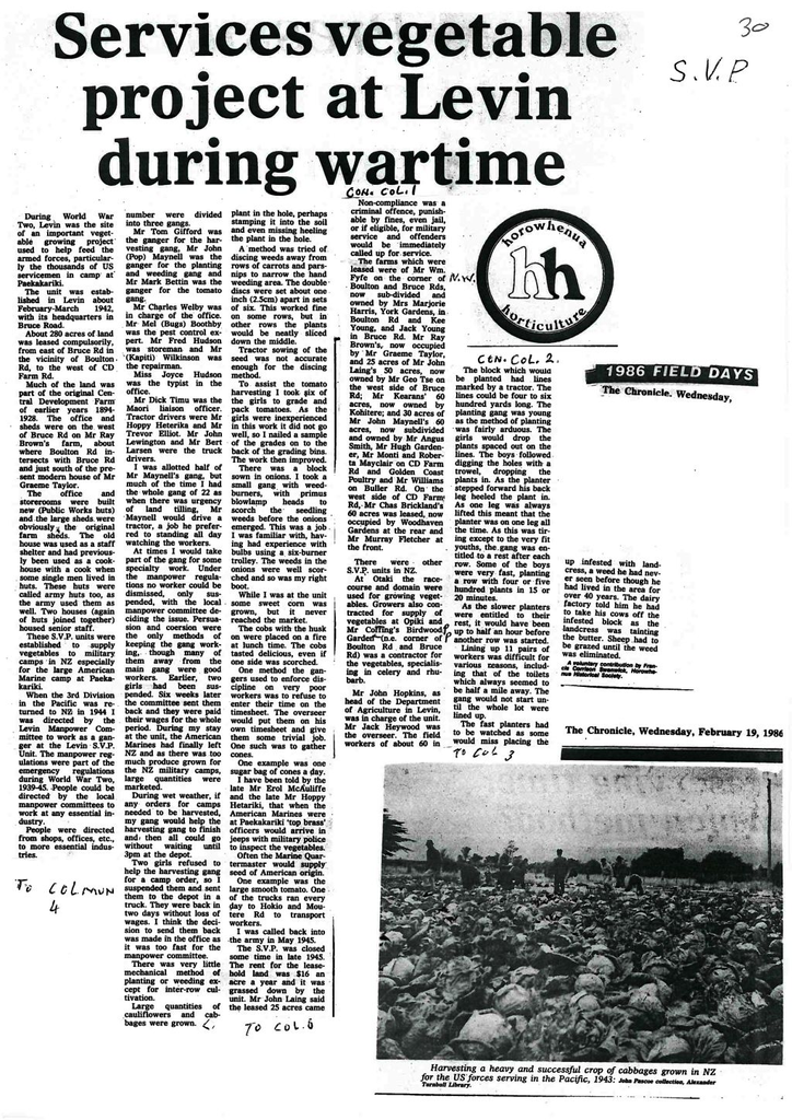 These S.V.P. units were established to supply vegetables to military camps in NZ especially for the large American Marine camp at Paekakariki.
