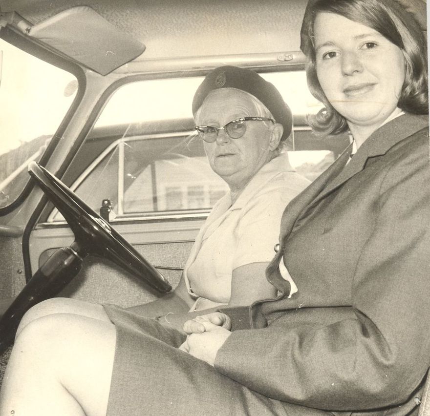 Penciled on back - Sister J. Revell, the new Plunket Nurse for Levin accompanies Sister J. McMillan on her home-visiting. Wed. May 15, 1968.