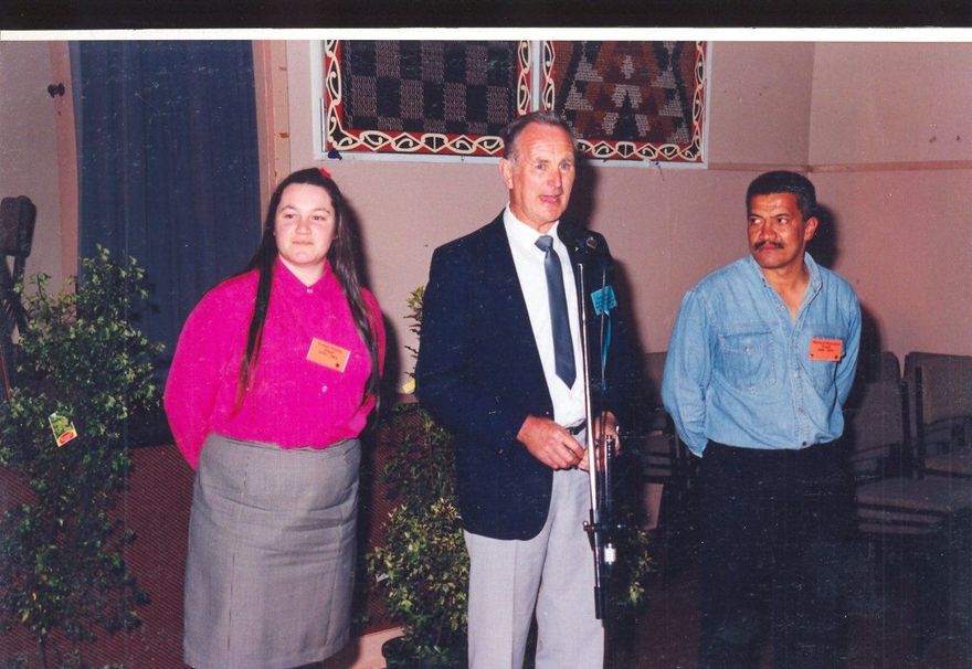 Left to Right - Tracey Finlay (ex pupil 1978 – 84), Mr George Dowd (reunion Chairman), Michael Herewini (foundation pupil 1969 -70).
