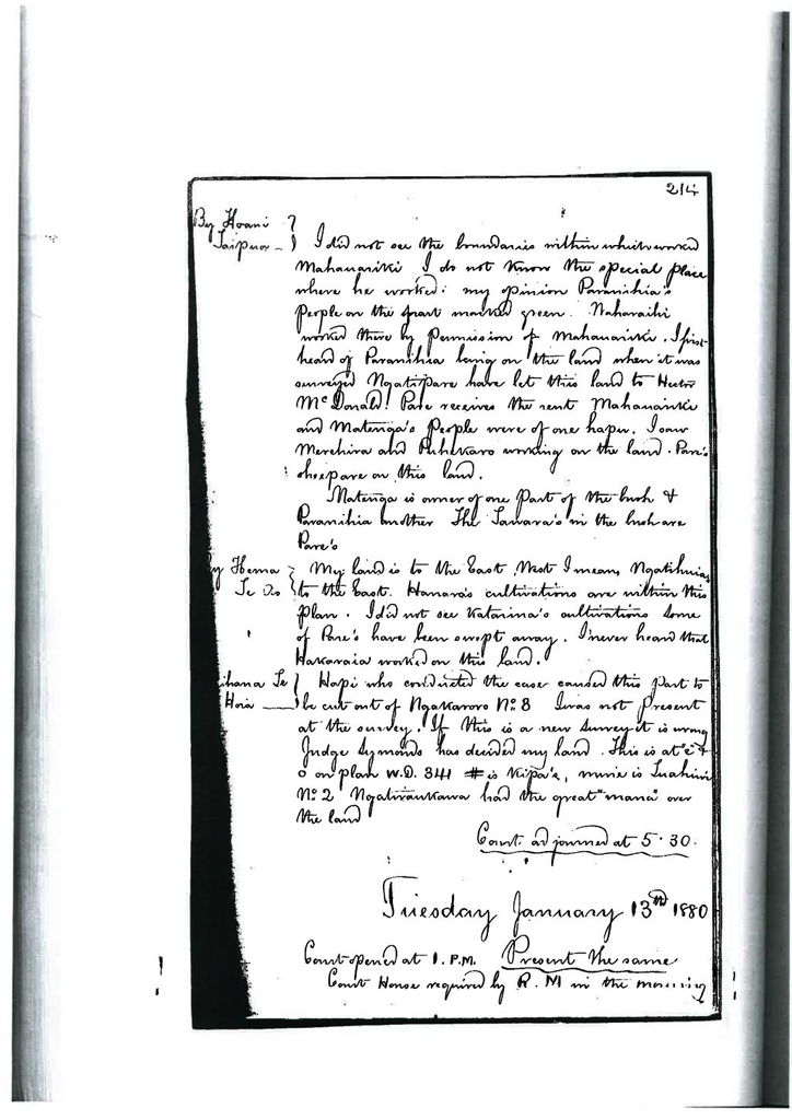 Otaki Maori Land Court Minutebook - 13 January 1880.