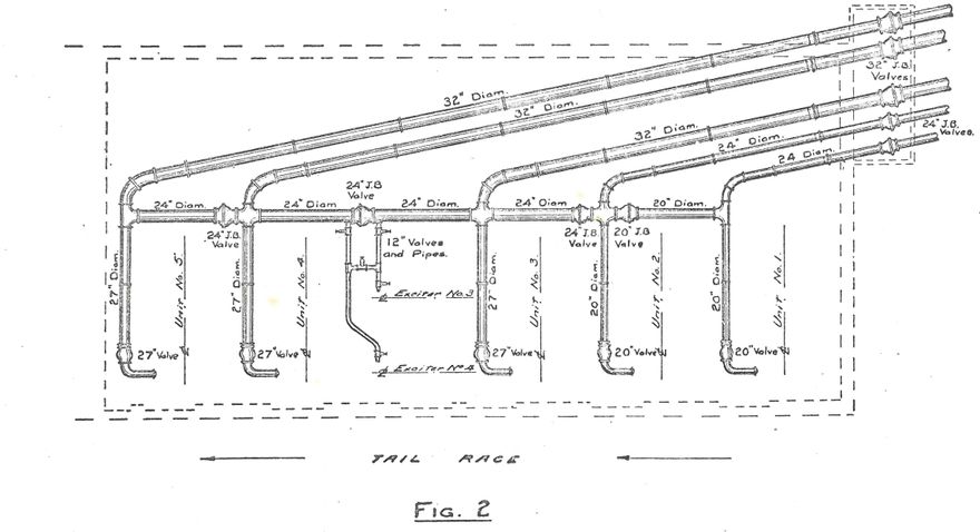 Hand drawn plan showing pipes entering the Mangahao power station - not sure of details ????