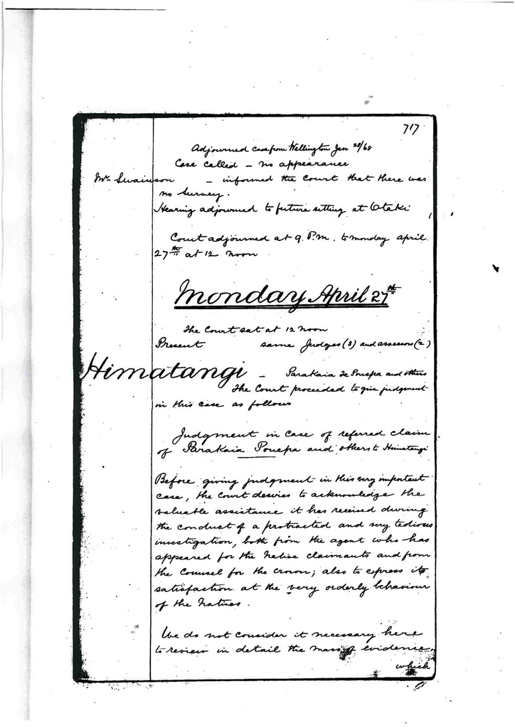 Judgment in case of referred claim of Parakaia Te Pouepa and others to Himatangi.