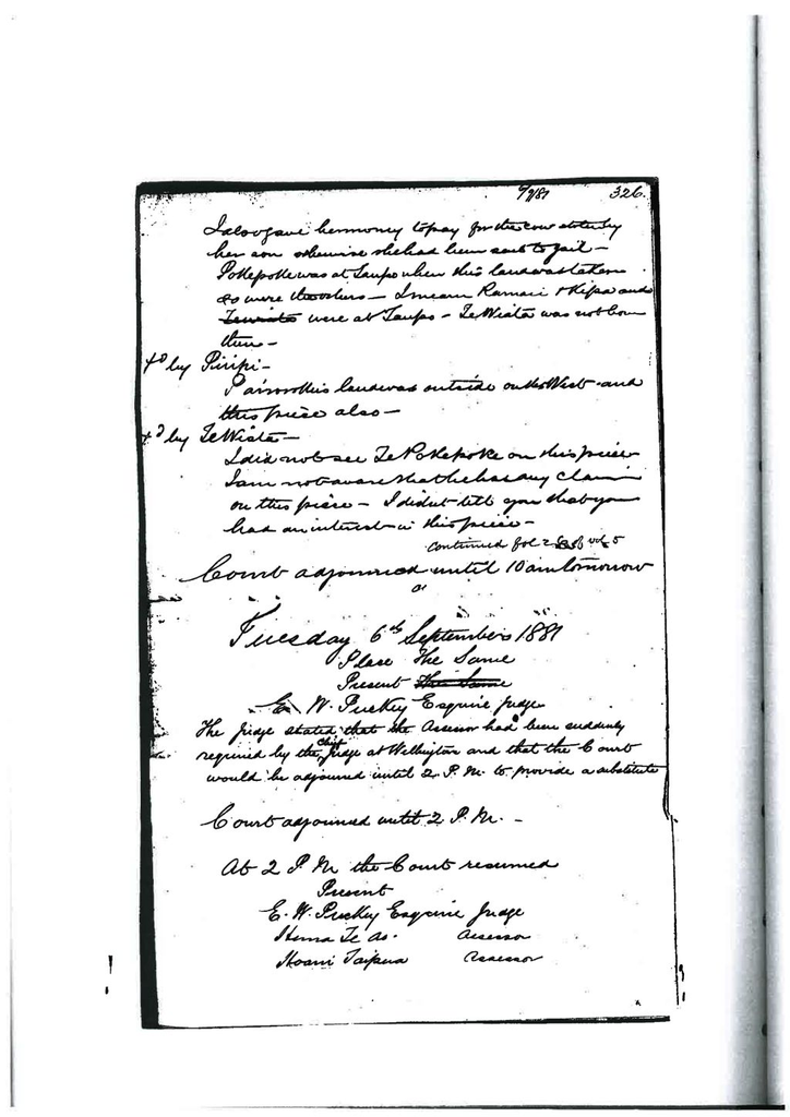 Otaki Maori Land Court Minutebook - 6 September 1881.
