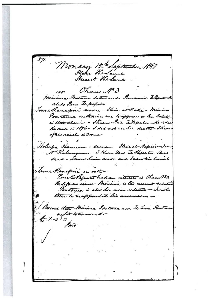 Otaki Maori Land Court Minutebook - 12 September 1881.