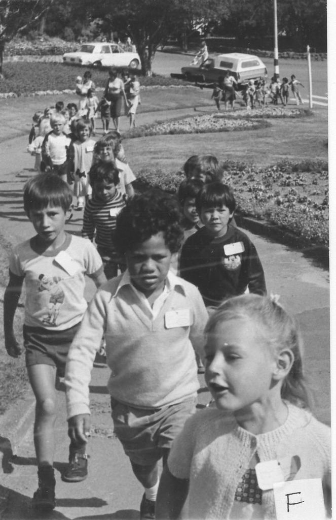 Children walking along path (to entrance at Wellington Zoo ?) 1 B&W photo print