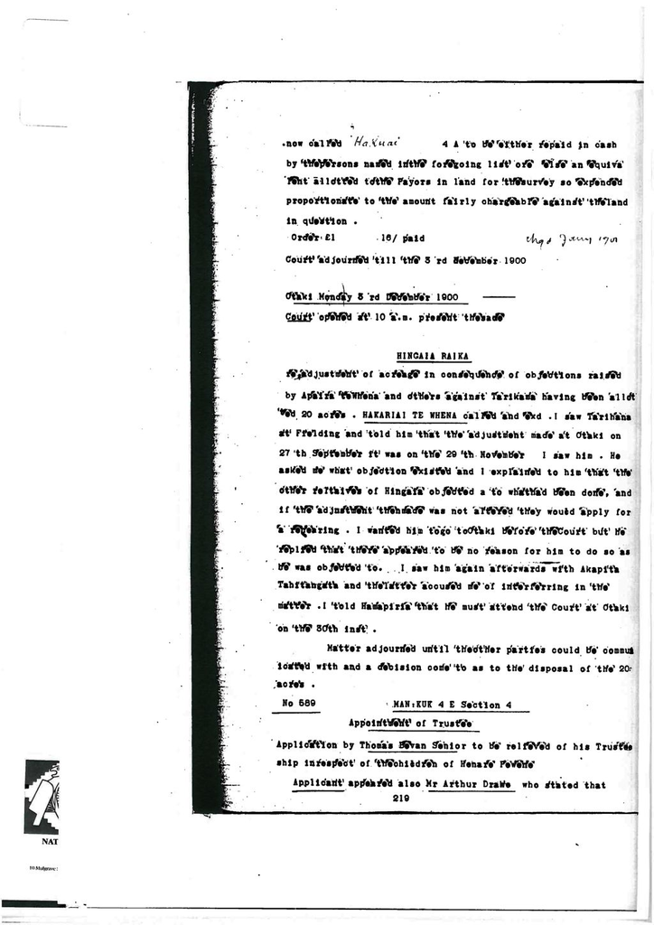 Otaki Maori Land Court Minutebook - 3 December 1900.