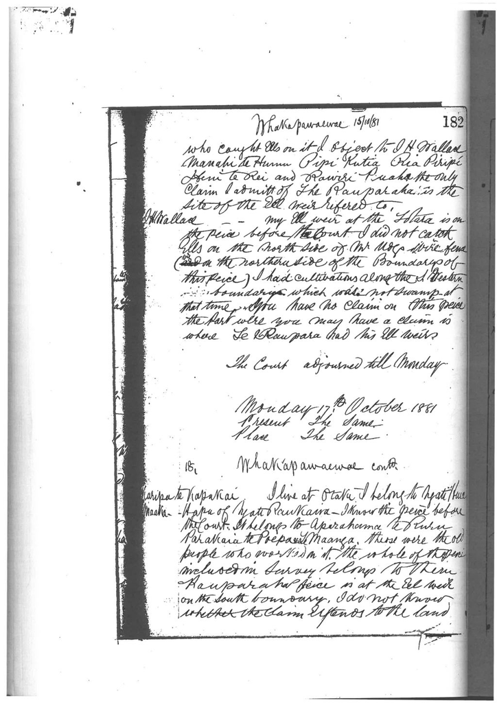 Otaki Maori Land Court Minutebook - 17 October 1881.