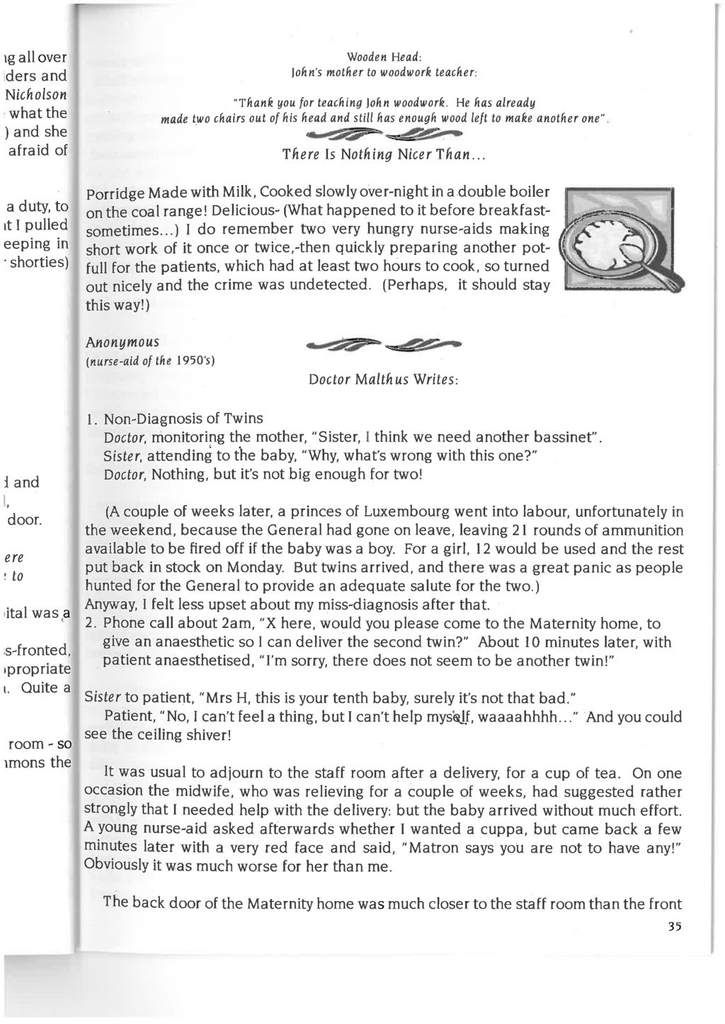 Sister to patient, "Mrs H, this is your tenth baby, surely it's not that bad."