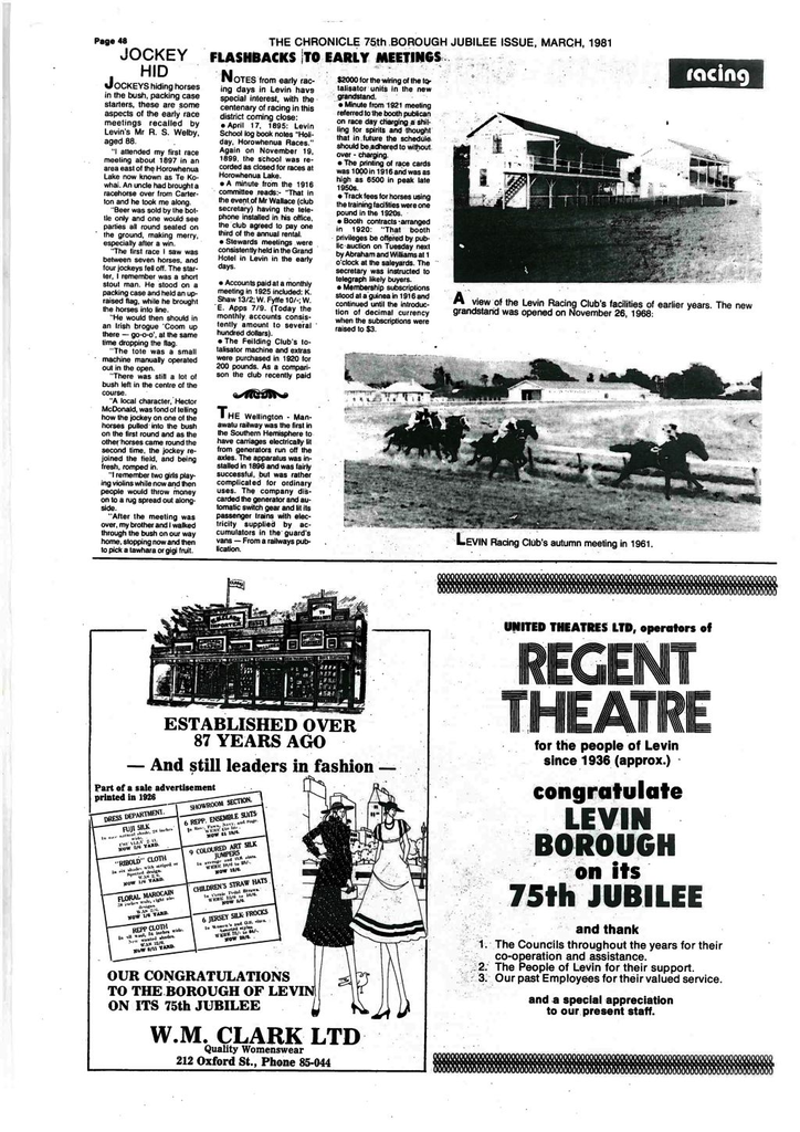 Notes from early racing days in Levin have special interest, with the centenary of racing in this district coming close.
