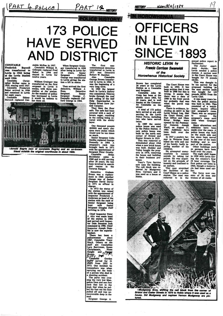 Also Constable George Brown transferred to Levin in 1964. It was the beginning of a very long term.