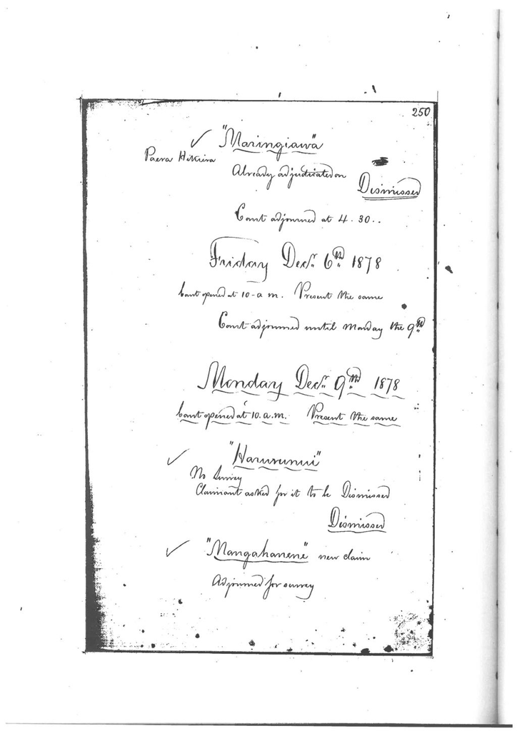 Otaki Maori Landcourt Minutebook - 9 December 1878.