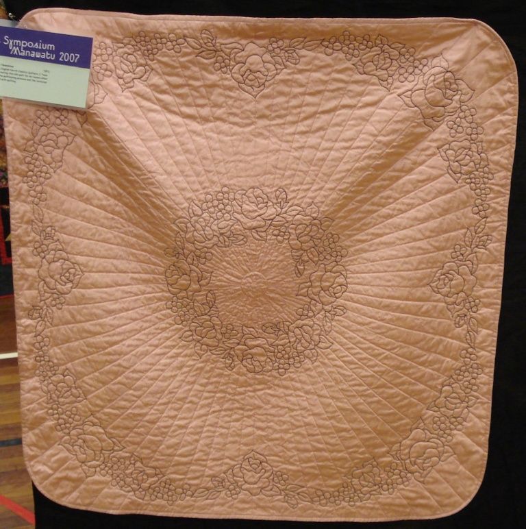 Inspired by the works of the English North Country Quilters. I took time to "smell the roses" by creating this silk quilt for no reason other than the pure enjoyment of the quiltmaking process and the textures and light play of silk combined with quilting.