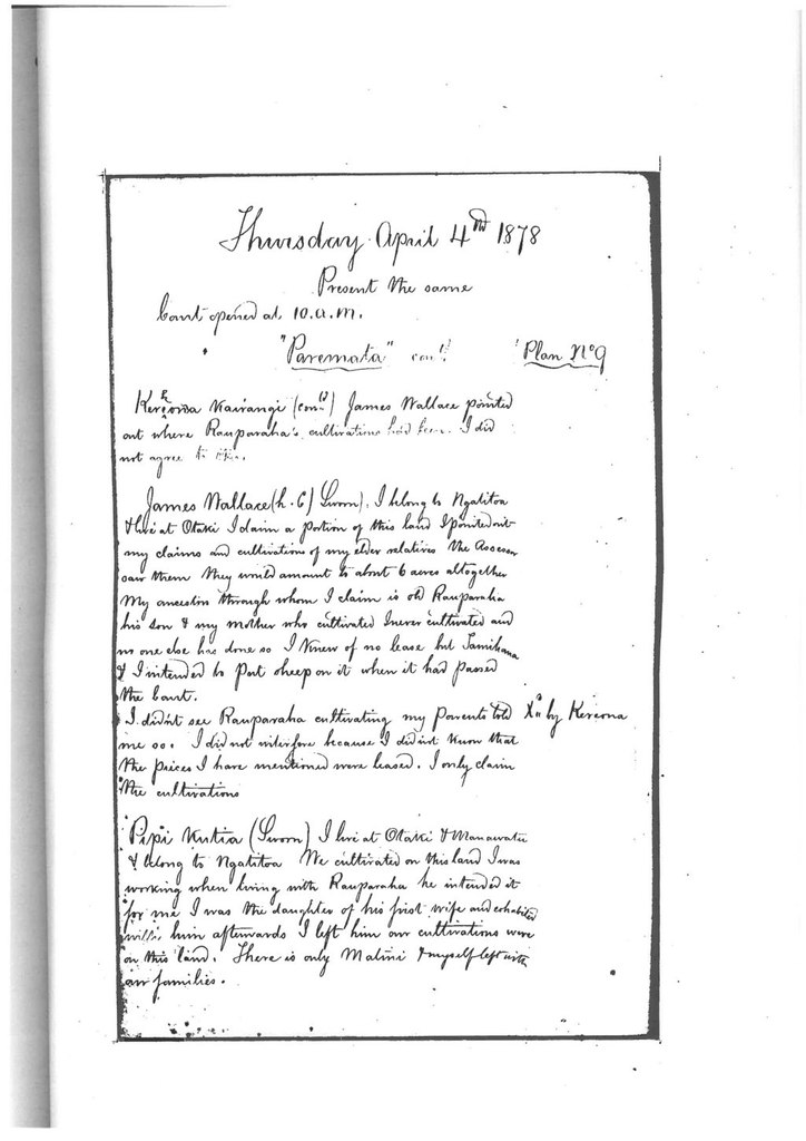 My parents lived on the land before me. I remember the land in 1840 my parents were there then they cultivated on it and had a pa which belonged to Ngati Huia and Ngati Kauwhata.