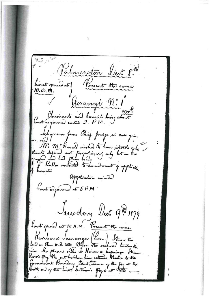 Otaki Maori Land Court Minutebook - 9 December 1879.