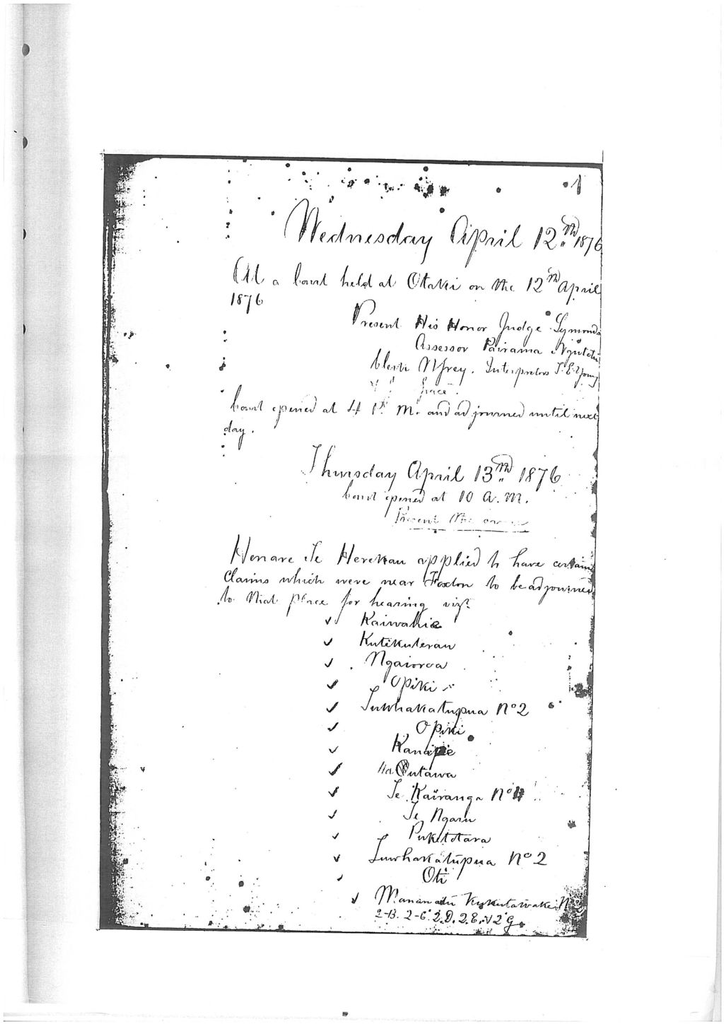 Otaki Maori Landcourt Minutebook - 12 April 1876