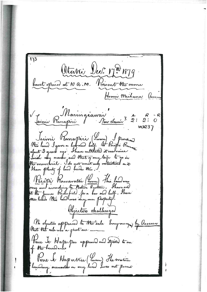 Otaki Maori Land Court Minutebook - 17 December 1879.