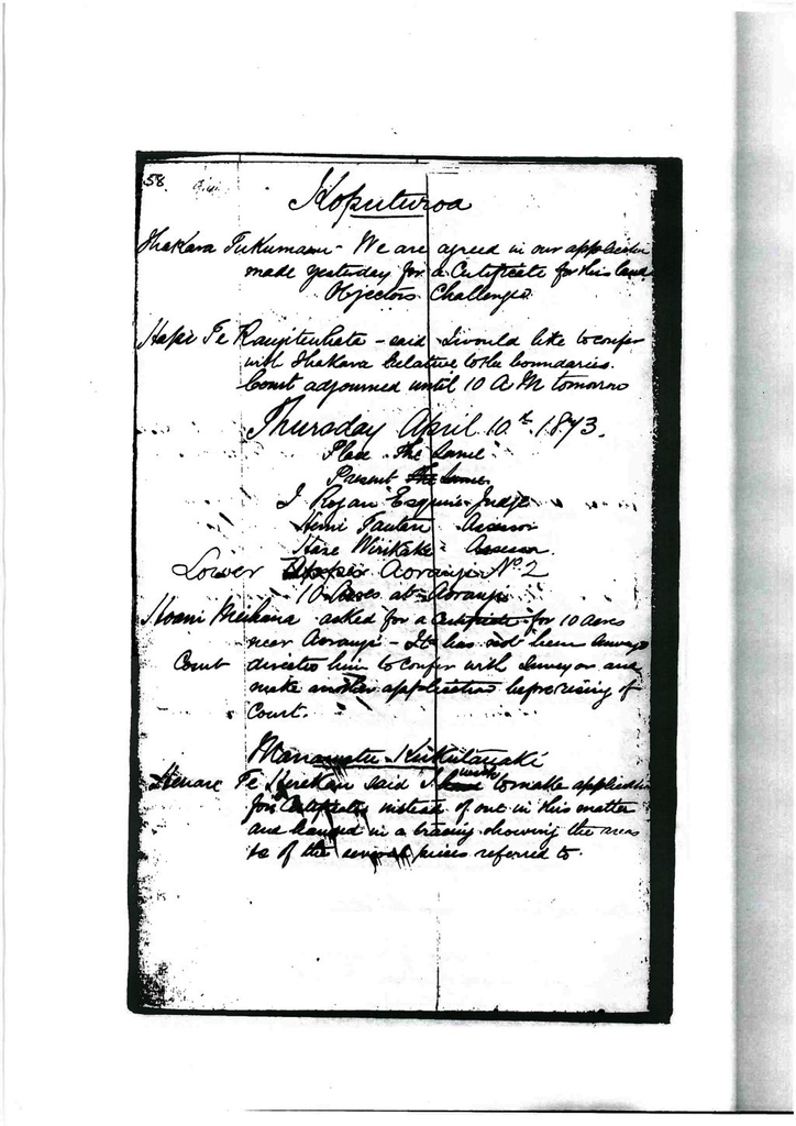 Mr. Cash said on behalf of Muaupoko I desire to make application for a adjournment until 2 pm to enable the list of names in this matter to be completed.