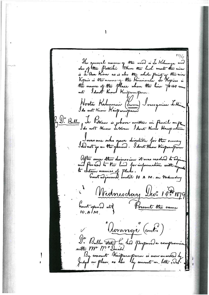 Otaki Maori Land Court Minutebook - 10 December 1879.